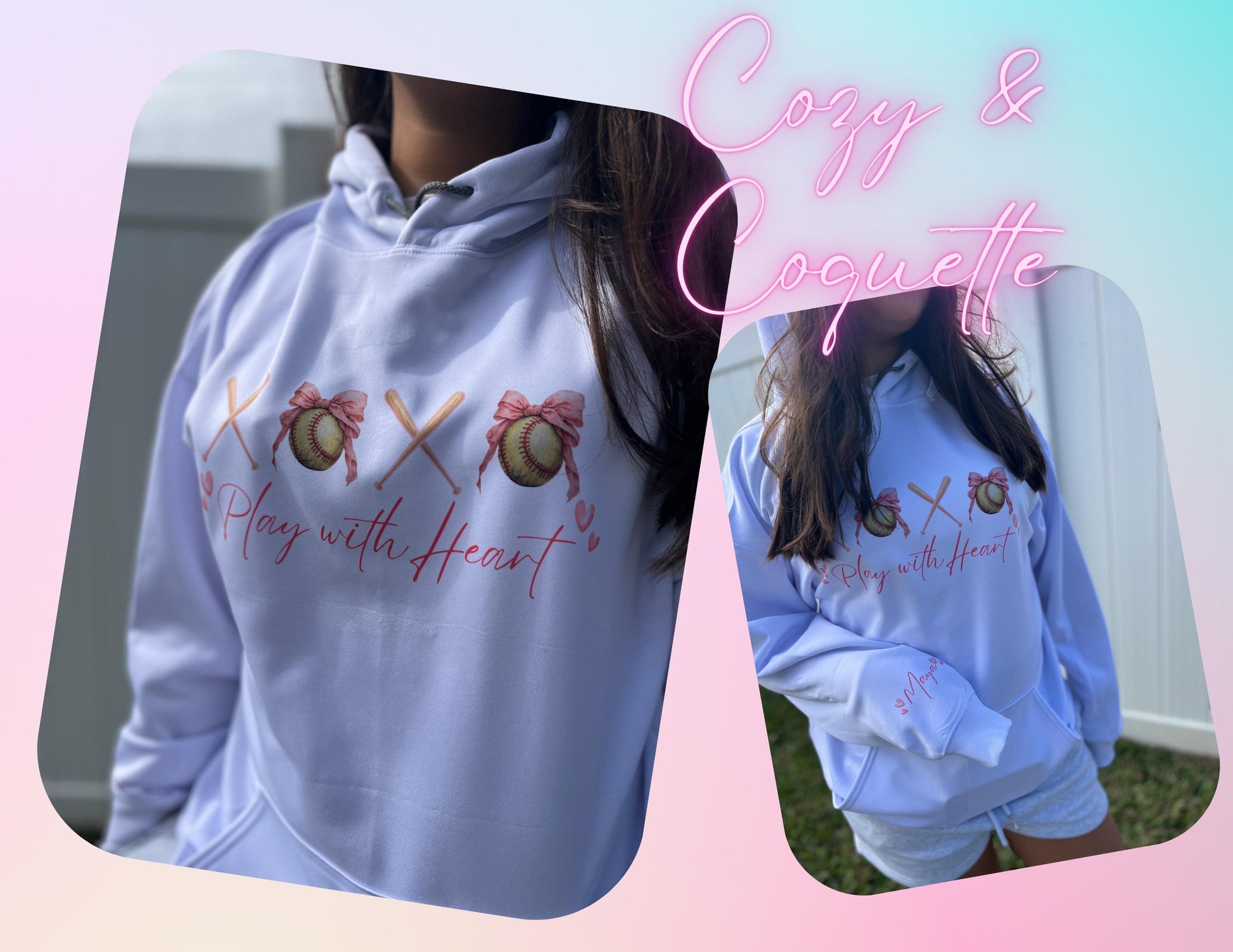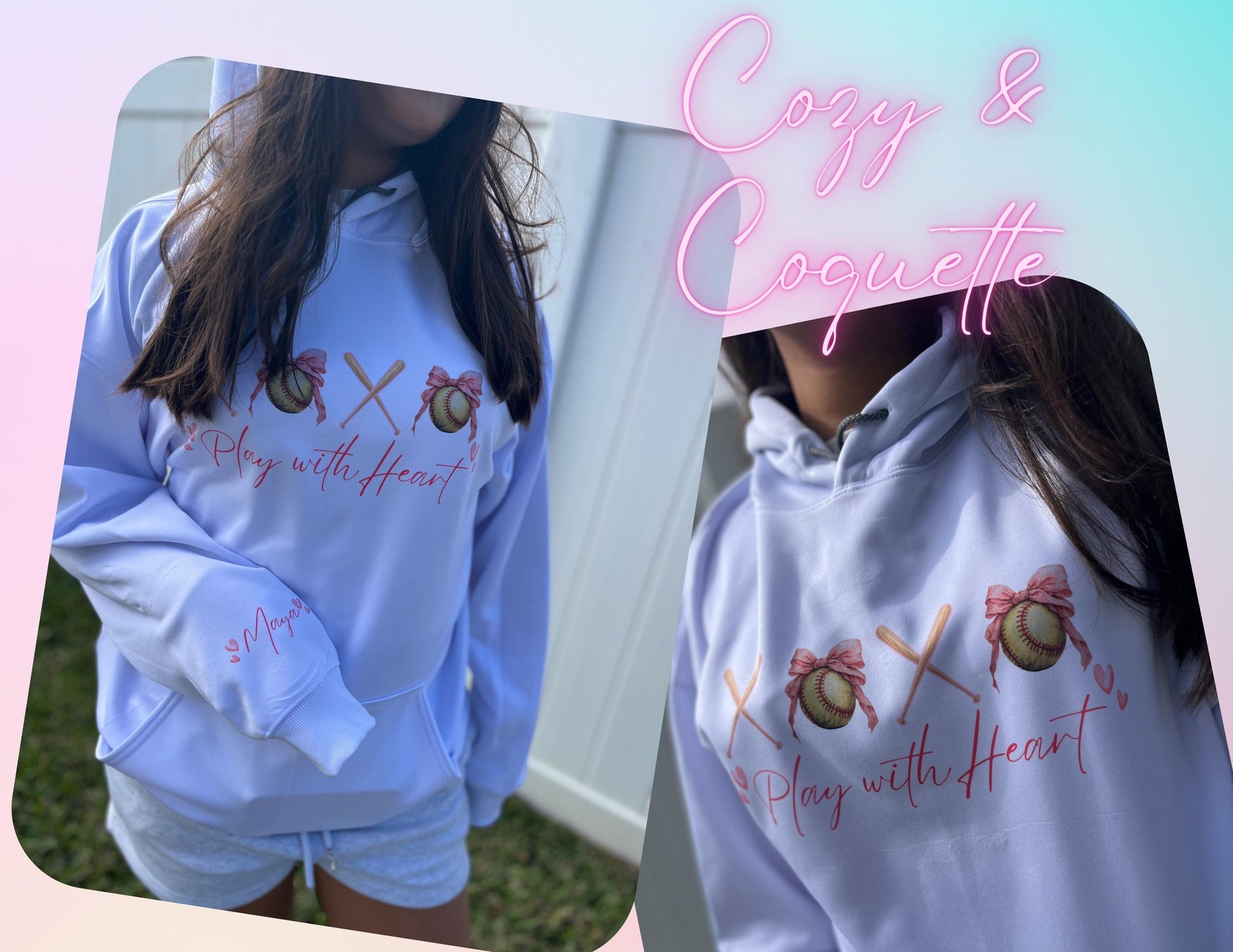 Coquette Softball Hoodie Personalized | Gift for Softball Mom, teens and preteens | Mother's Day Idea