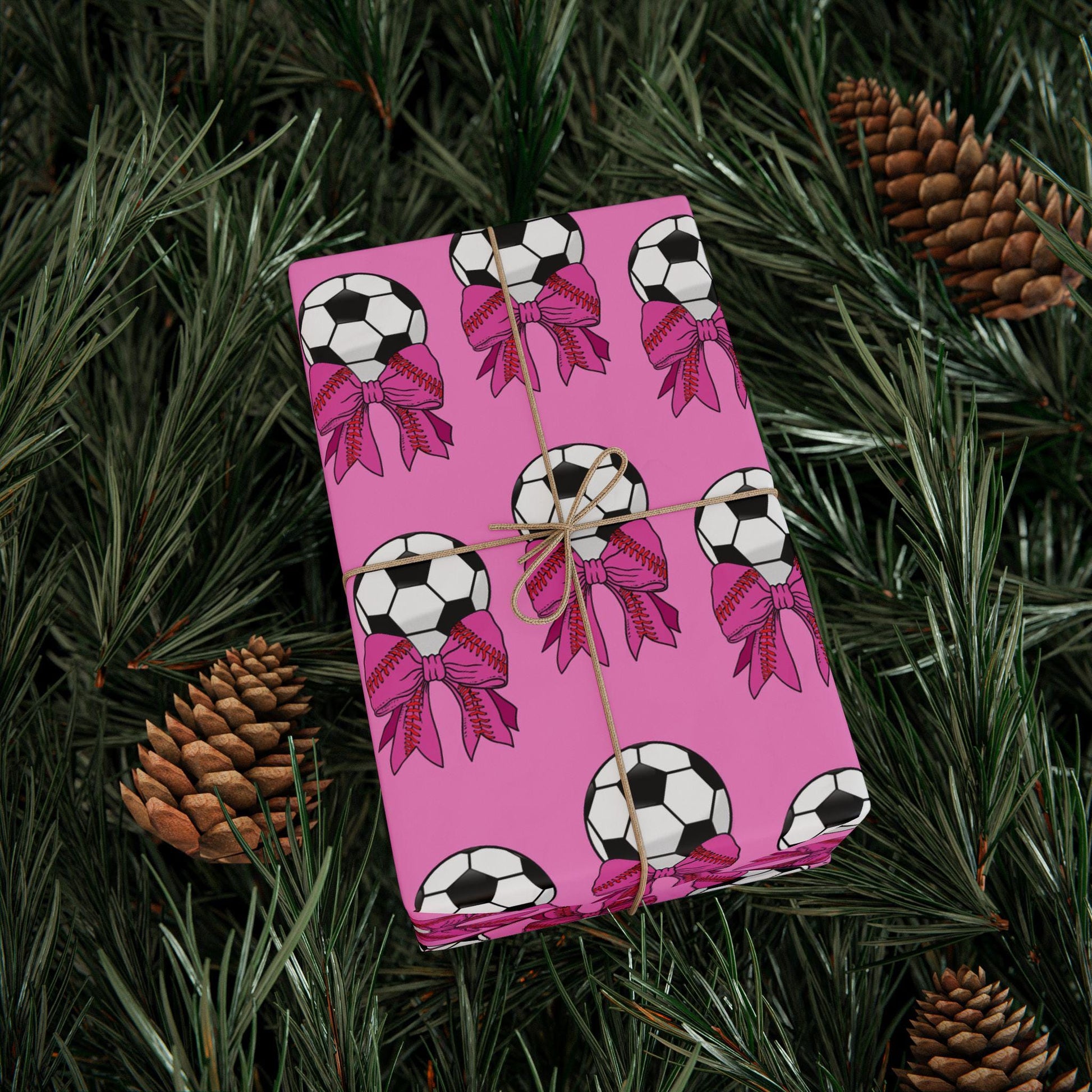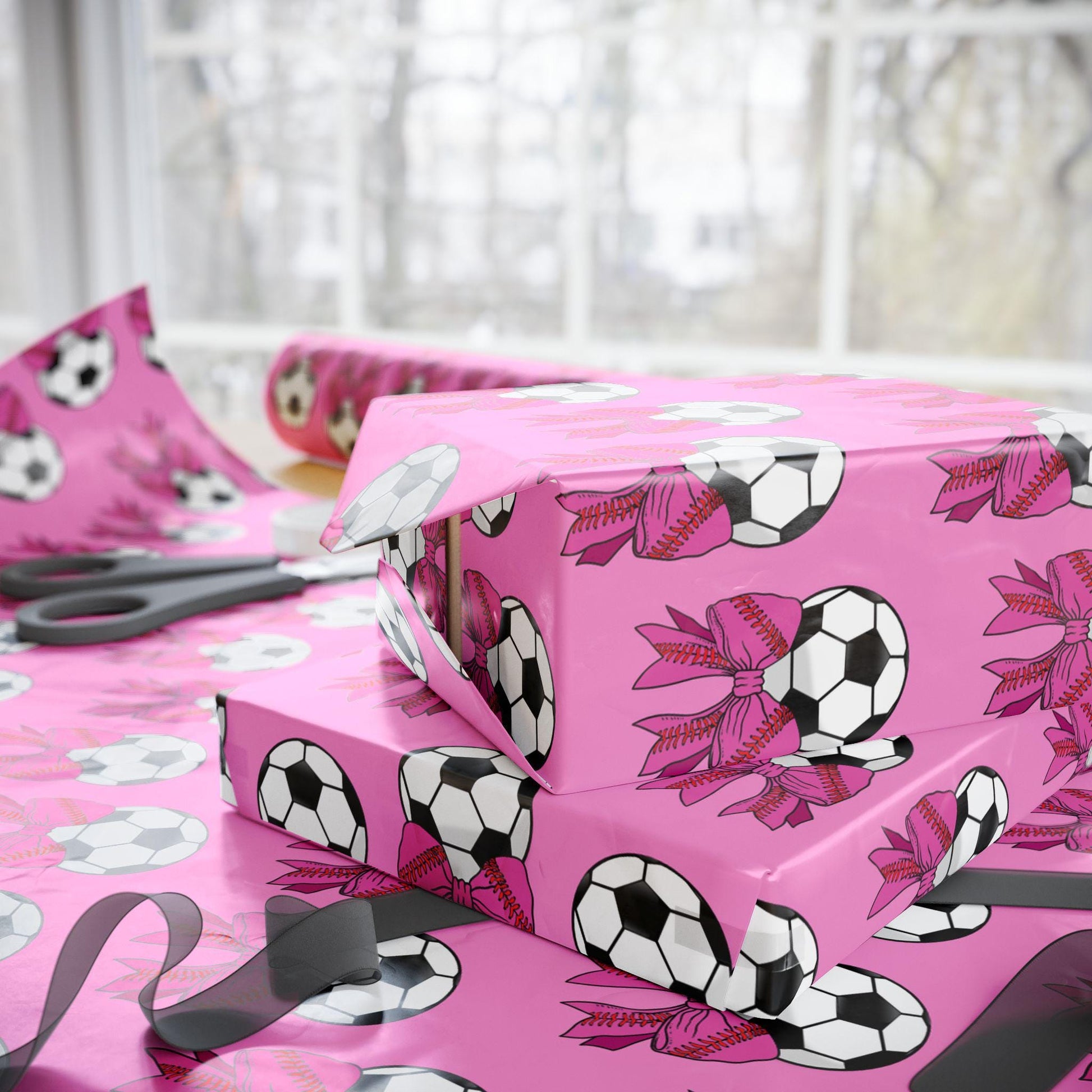 Soccer Coquette Wrapping Paper | Soccer Gift Wrap Paper | Soccer Themed Paper for Christmas, Birthdays, Team Parties, Celebrations, Holidays