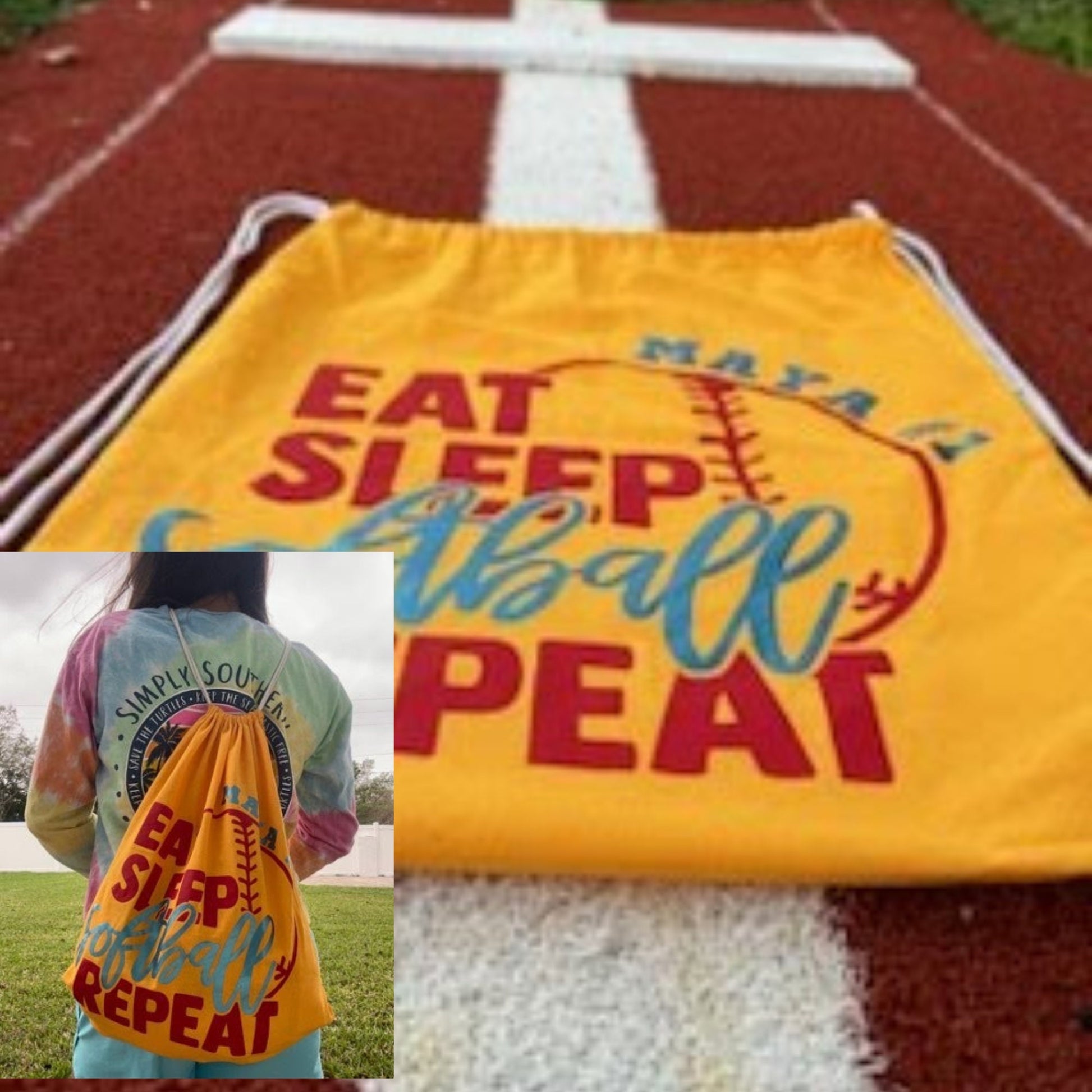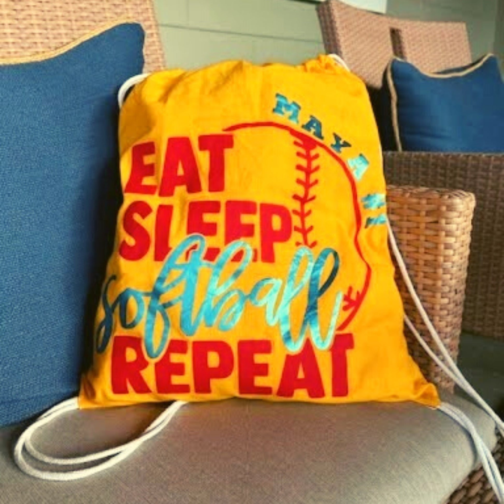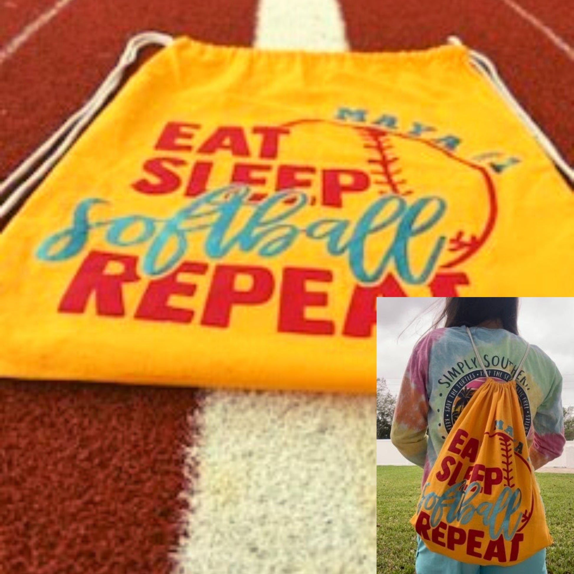 PERSONALIZED Softball Drawstring Bags Perfect for sleepovers and/or overnight hotel stays. Name and Player's Number using team colors. Large sized (16"x10") yellow canvas drawstring bag with plenty room for those last minute trips. $18 each plus shipping. Special price for team orders of 10+. Please add personalization details below.